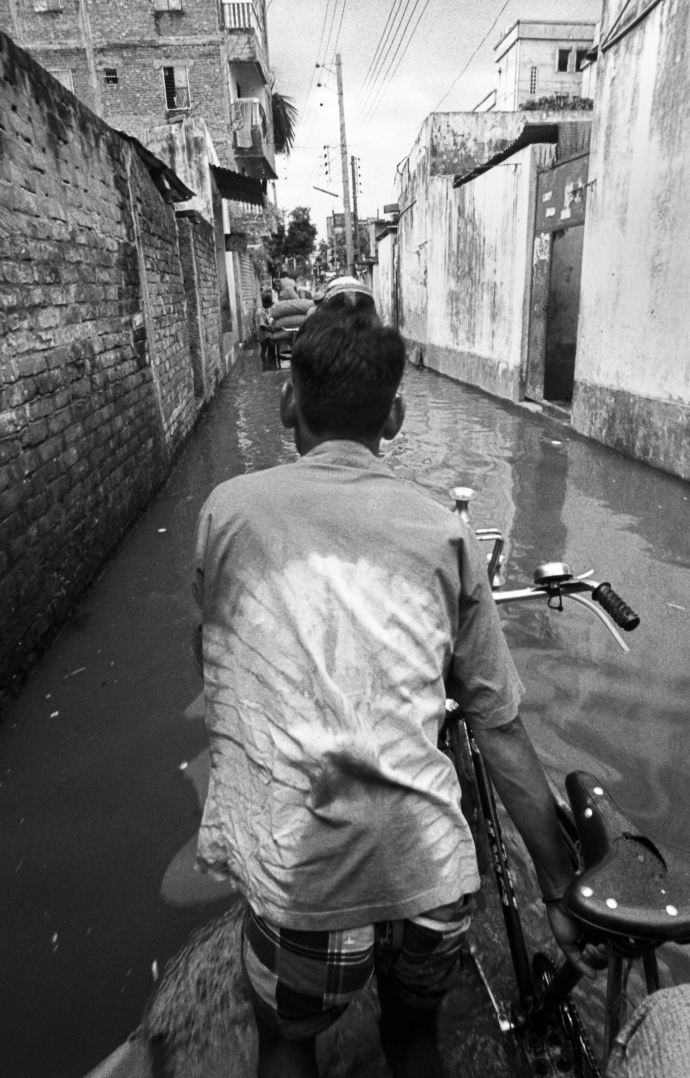 Yes, when the monsoon hits, there is only mean that can be useful is rickshaws in urban allies. Dhaka 2005